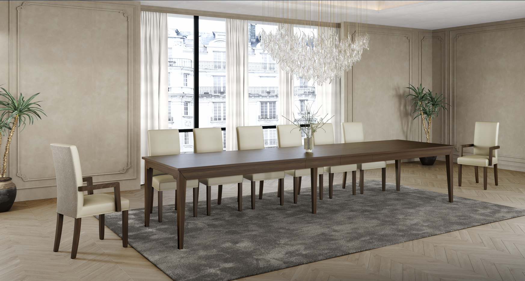 Combining clean lines and modern materials with subtle ornate details for a sophisticated atmosphere.