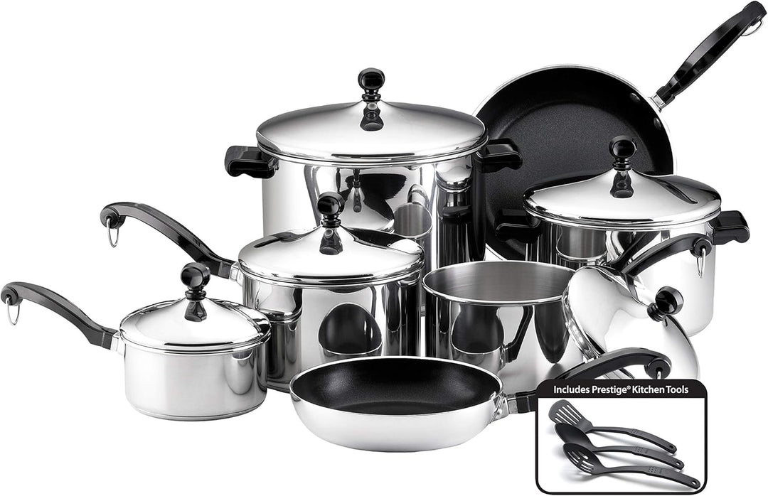 Farberware Classic Stainless Steel Cookware Pots and Pans Set, 15-Piece