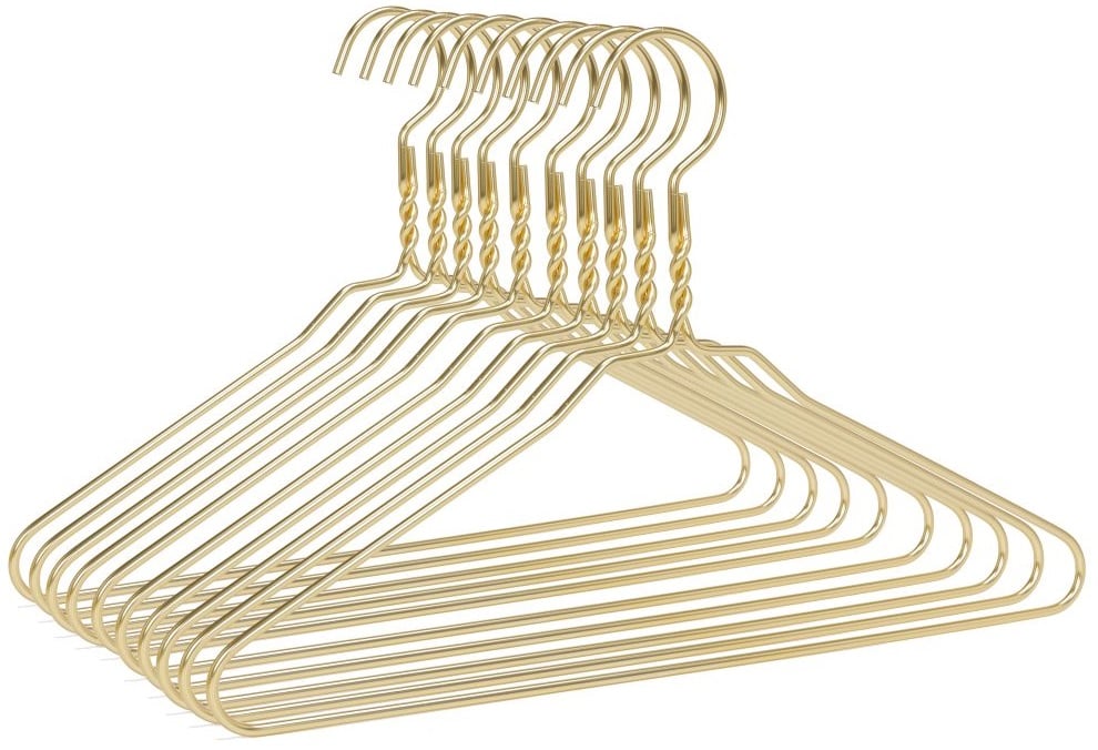 Upgrade your closet with our Gold Aluminum Hanger. Made of sleek, durable aluminum, it's perfect for hanging your coats and keeping them wrinkle-free. With its elegant gold finish, it adds a touch of style to your organization. Trust in our high-quality hangers for a clutter-free and polished wardrobe.