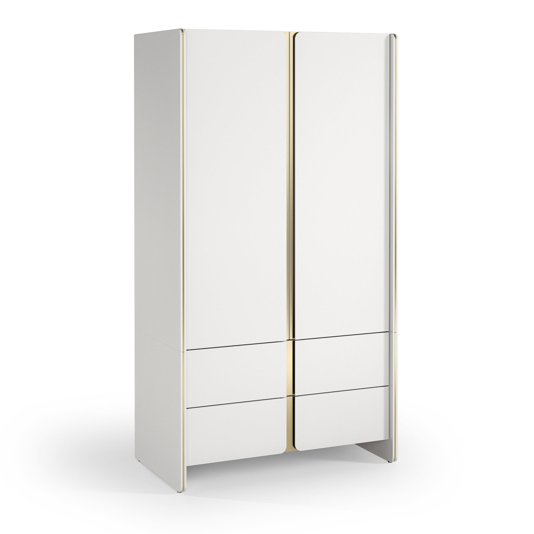 Discover sophisticated storage with this stunning ivory armoire, an essential piece within our prestigious ivory collection. Featuring matte white wood construction and softly rounded corners, it delivers both aesthetic refinement and practical durability. Luxurious gold line accents elegantly frame each opening, creating visual dimension and understated opulence. This statement piece offers generous capacity for clothing and accessories while seamlessly integrating with your coordinated bedroom design. An investment in timeless style and functional elegance.