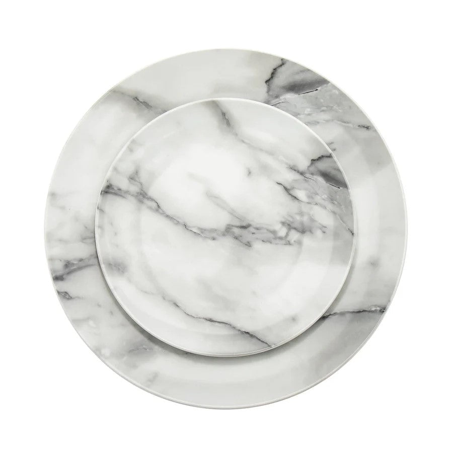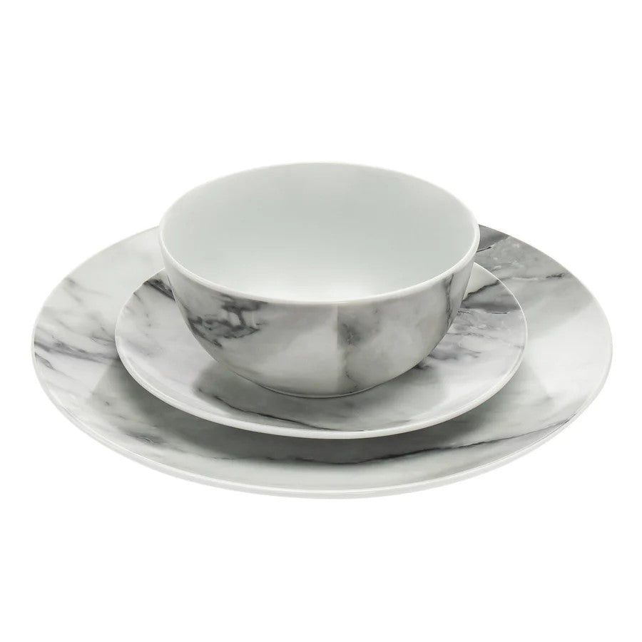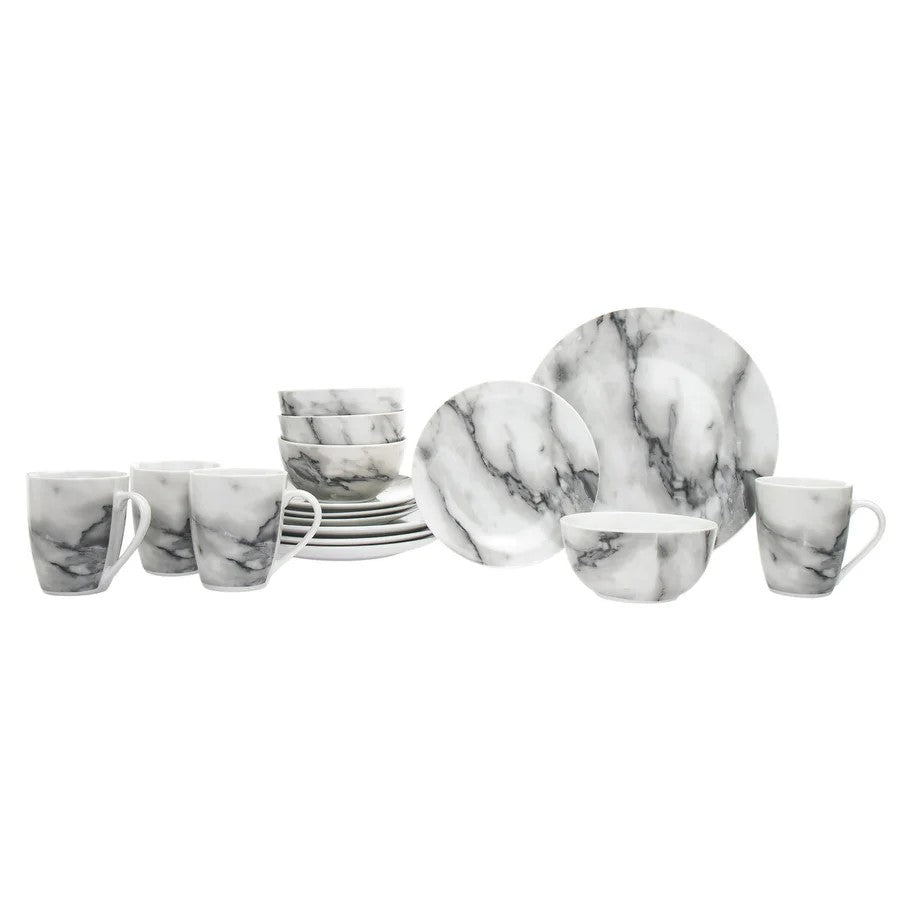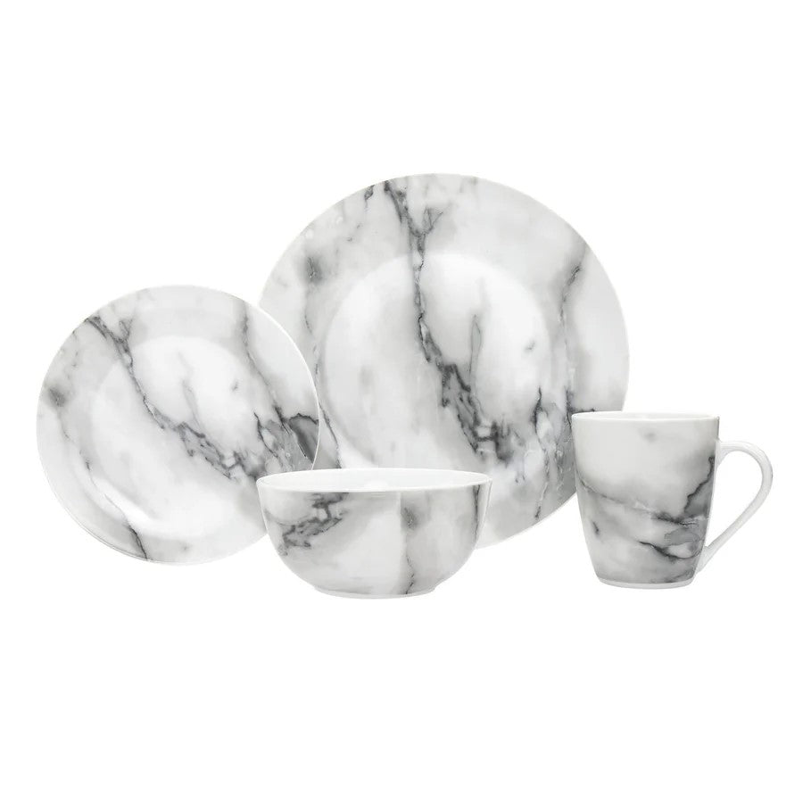 Introduce elegance to your dining table with the Carrera Porcelain 16 Piece Dinnerware Set. Made of durable porcelain, this set includes dinner plates, salad plates, bowls, and mugs for service of four. With its classic marble design, this set provides a timeless and sophisticated touch to any meal.