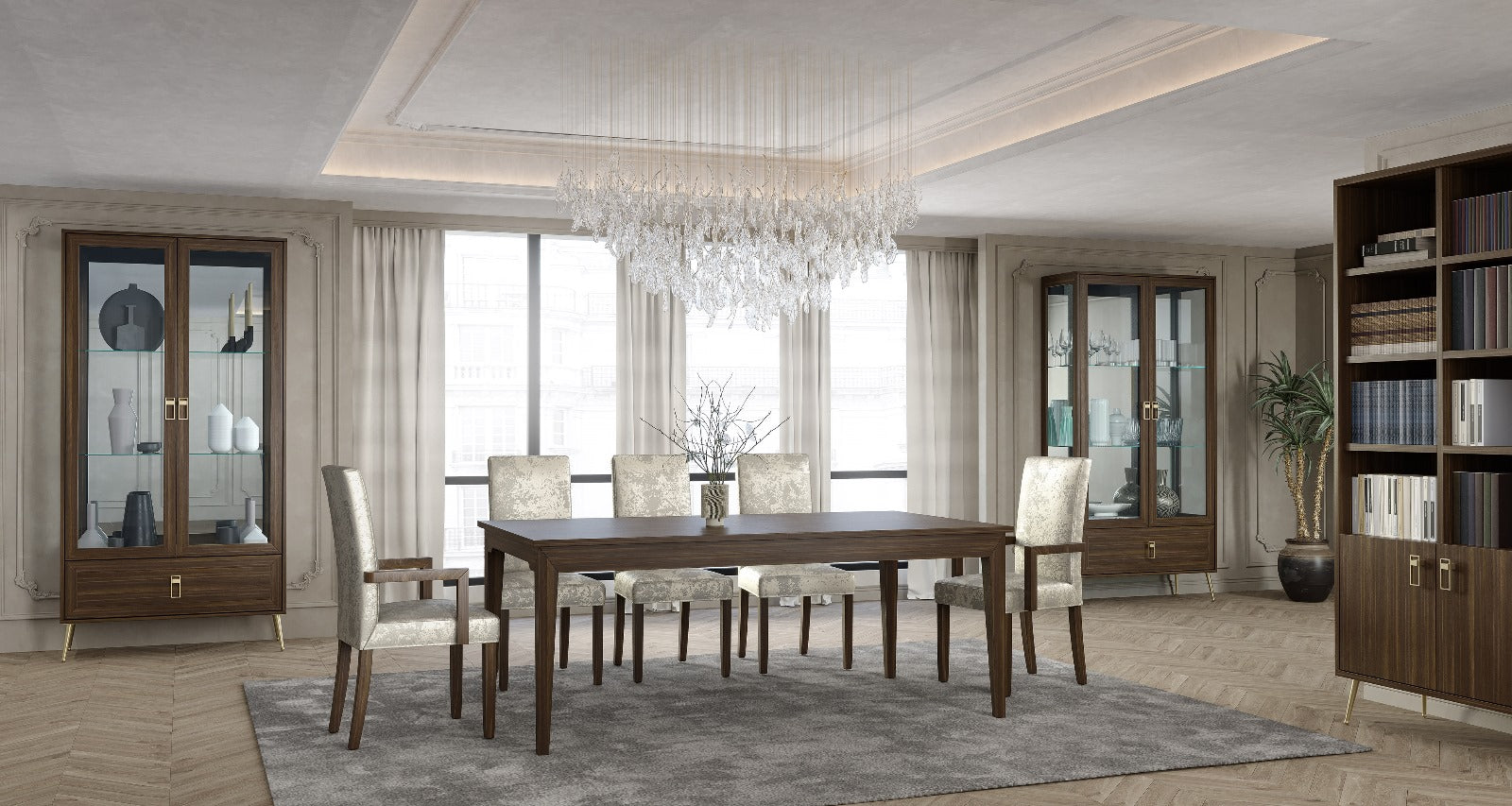 Combining clean lines and modern materials with subtle ornate details for a sophisticated atmosphere.